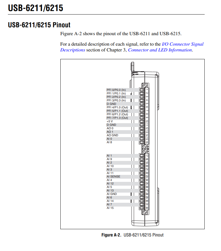 - NI USB-6211 DAQ Pinout